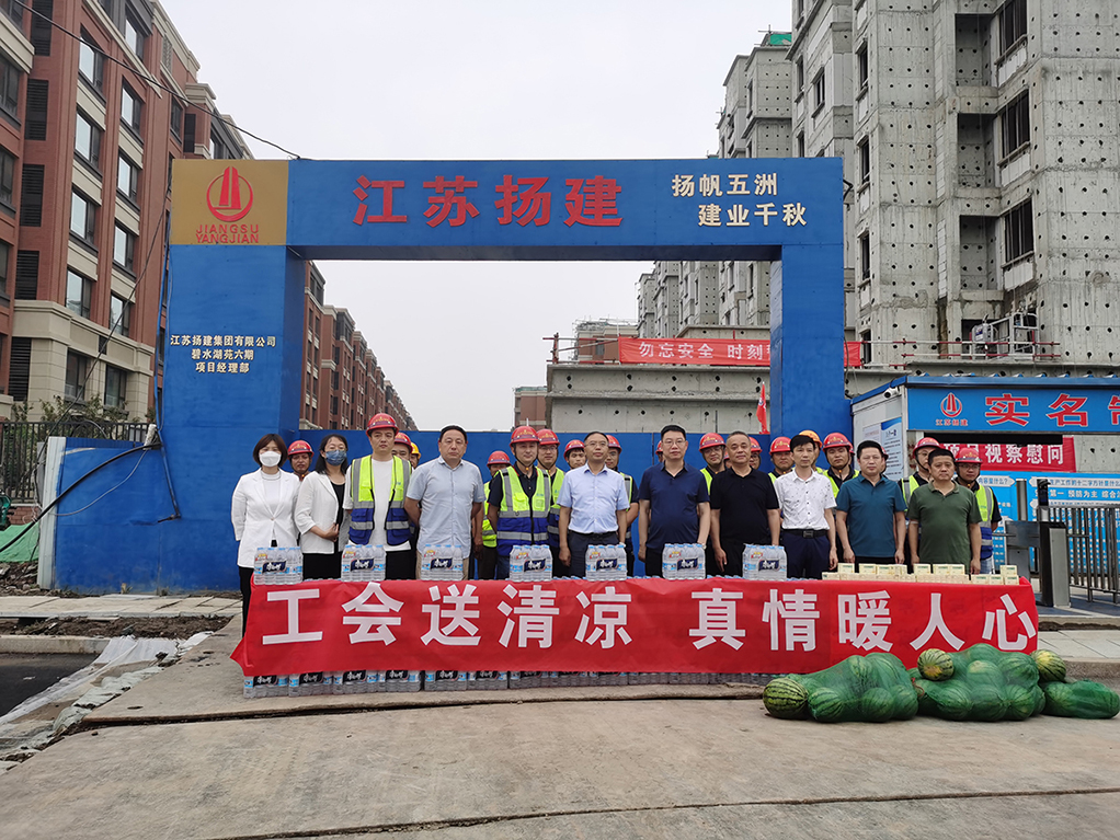集團(tuán)工會(huì)主席劉海斌對(duì)冒著酷暑?yuàn)^戰(zhàn)在一線的項(xiàng)目人員表示了親切慰問,并要求各公司一定要調(diào)整好項(xiàng)目施工的作息時(shí)間,進(jìn)行錯(cuò)峰作業(yè),保證一線員工充分的休息時(shí)間,注意夏季食品安全,切實(shí)做好防暑降溫工作;并為大家送來防暑降溫飲料、水果及藥品。
