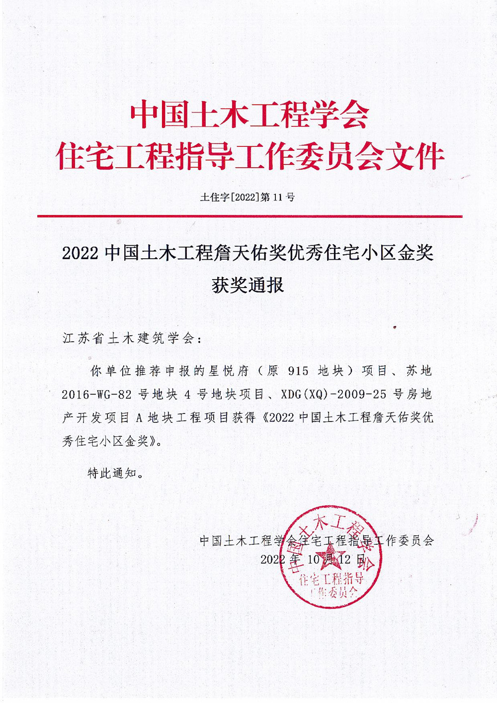 揚建網訊 近日,中國土木工程學會住宅工程指導工作委員會揭曉了“2022年中國土木工程詹天佑獎優(yōu)秀住宅小區(qū)金獎入選工程”名單,集團公司承建的星悅府(原915地塊)住宅項目在眾多項目中突出重圍,斬獲金獎。