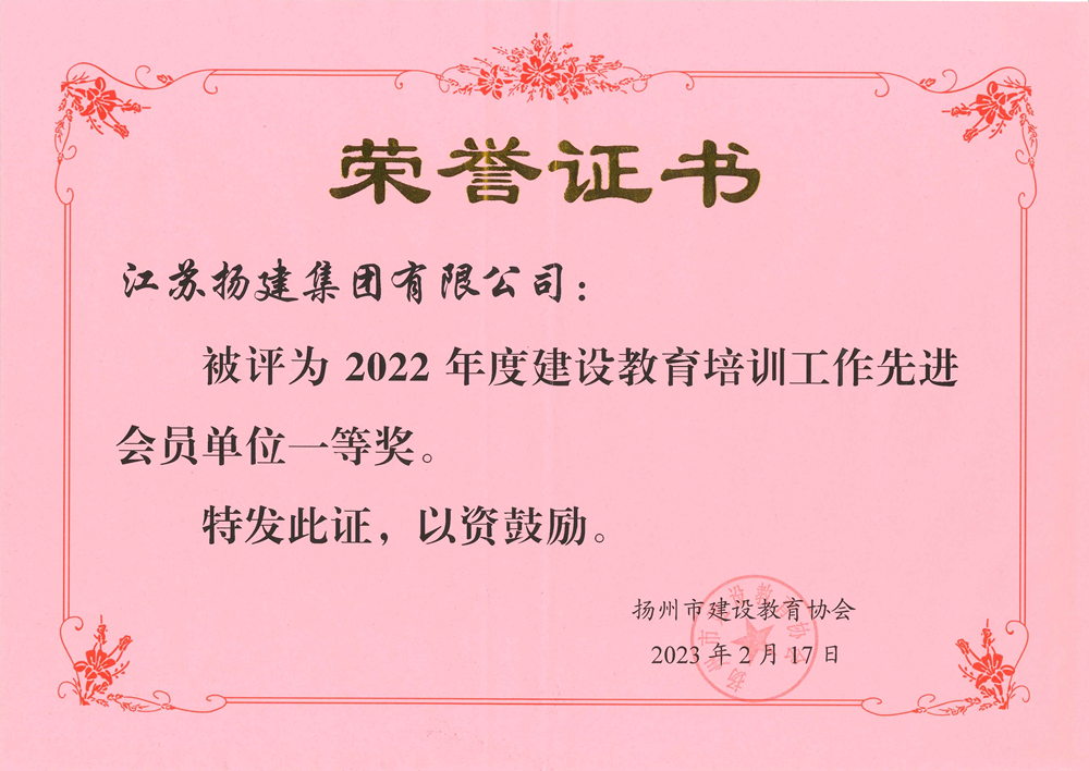 揚(yáng)建集團(tuán)獲評市建設(shè)教育協(xié)會先進(jìn)會員單位一等獎