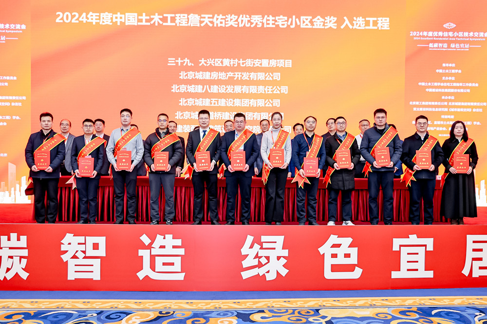 揚建網(wǎng)訊 2025年2月24日上午,中國土木工程學會住宅工作指導委員會在北京召開了2024年度中國土木工程學會優(yōu)秀住宅小區(qū)技術交流會,會上舉行了2024年度中國土木工程學會詹天佑優(yōu)秀住宅小區(qū)金獎頒獎儀式。由揚建集團承建的天月府項目榮獲該獎項,集團公司總經(jīng)理鄒厚存、項目管理二公司總工楊忠偉登臺領獎。