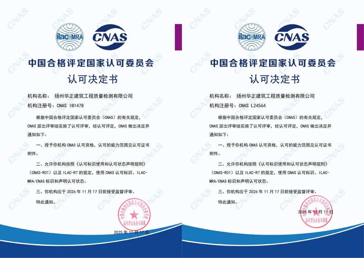 華正公司此次同時獲得了實驗室認(rèn)可與檢驗機構(gòu)認(rèn)可。實驗室檢測能力涵蓋金屬材料及其制品、混凝土材料、砂漿材料、主體結(jié)構(gòu)工程、磚與砌塊、工程測量與監(jiān)測、裝飾裝修工程等七大類。檢驗?zāi)芰Πüこ淌┕べ|(zhì)量評價、結(jié)構(gòu)安全性和可靠性評價、結(jié)構(gòu)抗震性評價、裝飾裝修施工質(zhì)量評價等四大類,檢驗檢測能力覆蓋了建筑工程主體主要項目參數(shù)。
