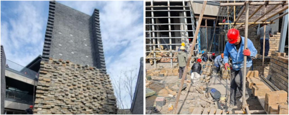 保護(hù)和傳承城市歷史文化是第一原則。通過歷史建筑重塑,增強(qiáng)文化認(rèn)同感,以延續(xù)城市文脈。項(xiàng)目啟動(dòng)之初,就秉承“傳承歷史風(fēng)貌,減少對(duì)周邊的壓迫感”的理念。在如何實(shí)現(xiàn)雙曲面城墻造型的問題上,項(xiàng)目團(tuán)隊(duì)采用“鋼龍骨+干掛砌筑”的工藝,摒棄普通砌筑方式,采用內(nèi)部增加鋼龍骨,外部通過“干掛”工藝砌筑城墻磚,每4皮設(shè)置一道水平支撐,將城墻磚“砌筑”在鋼骨架上形成整體。既實(shí)現(xiàn)了雙曲面城墻的造型,又確保了結(jié)構(gòu)安全與穩(wěn)定性。