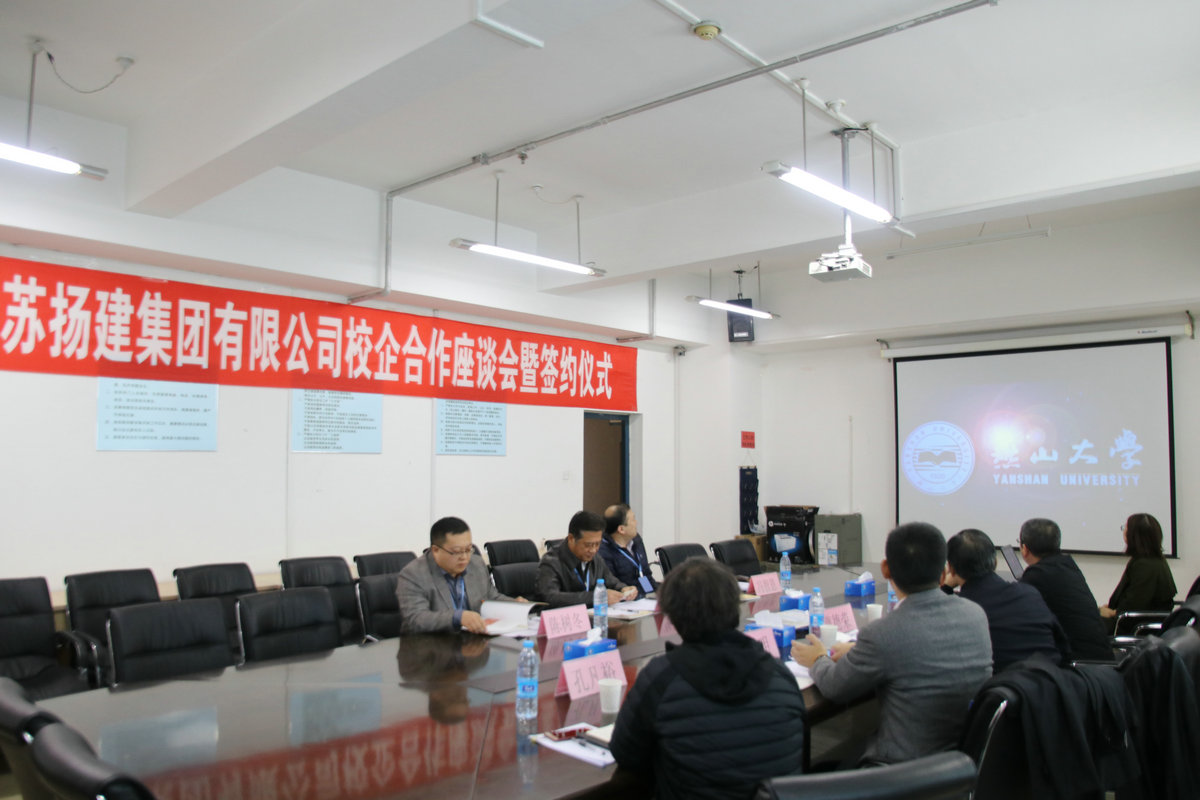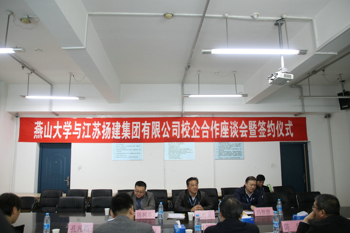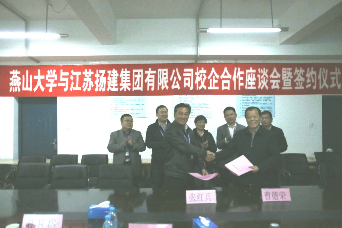 座談過程中,雙方首先觀看了各自的宣傳片,增進(jìn)了相互了解。隨后,燕大張?zhí)庨L介紹該校簡要校史、發(fā)展概況和畢業(yè)生就業(yè)情況;我集團(tuán)曹董事長介紹了揚(yáng)建的發(fā)展概況和人才需求情況;許世明董事就近年來揚(yáng)建集團(tuán)引進(jìn)、培養(yǎng)和使用的燕山大學(xué)優(yōu)秀畢業(yè)生情況作了介紹。最后,他們代表校企雙方正式簽署了《燕山大學(xué)-江蘇揚(yáng)建集團(tuán)有限公司校企合作協(xié)議》。根據(jù)該協(xié)議,我集團(tuán)將在燕大設(shè)立優(yōu)秀生源基地,燕大將在我集團(tuán)設(shè)立畢業(yè)生就業(yè)基地;雙方定期聯(lián)系,建立人才供需信息互動機(jī)制;不定期互訪,雙方在人才培養(yǎng)與就業(yè)、在職骨干深造、教學(xué)改革、專業(yè)設(shè)置、產(chǎn)學(xué)研合作、互派導(dǎo)師或顧問等方面更好互動、深入合作。